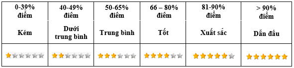 • Bảng tính điểm cho từng tiêu chí
